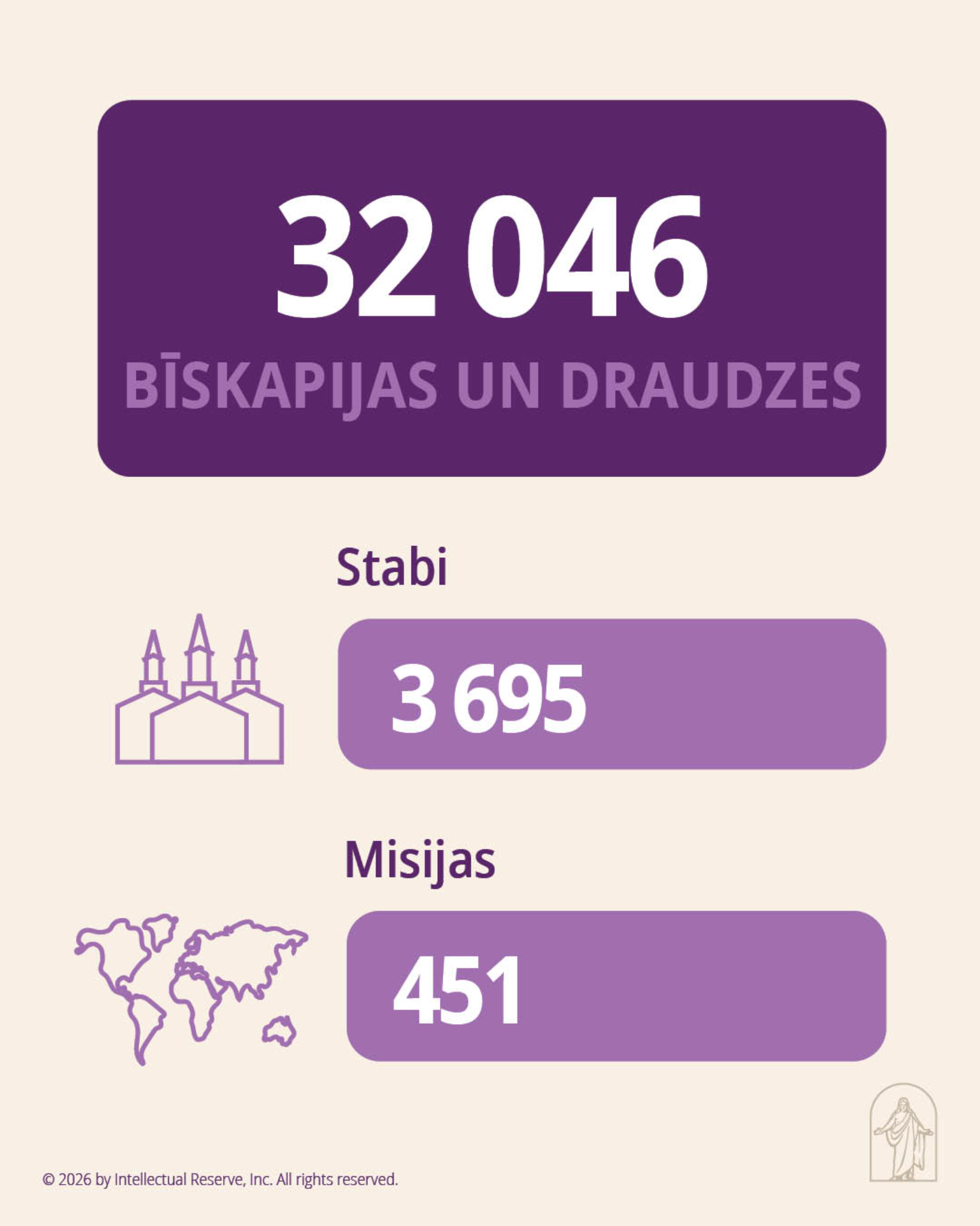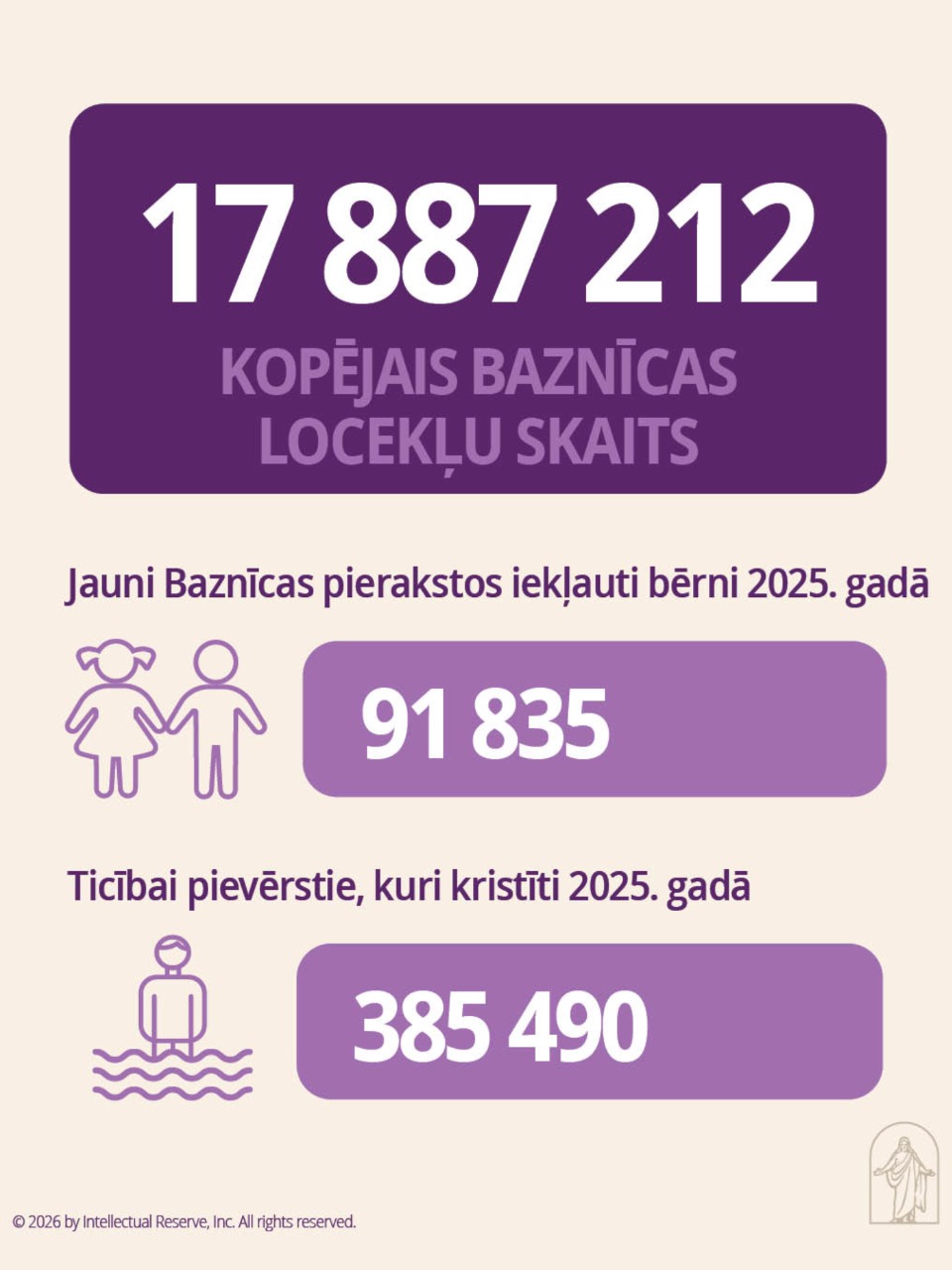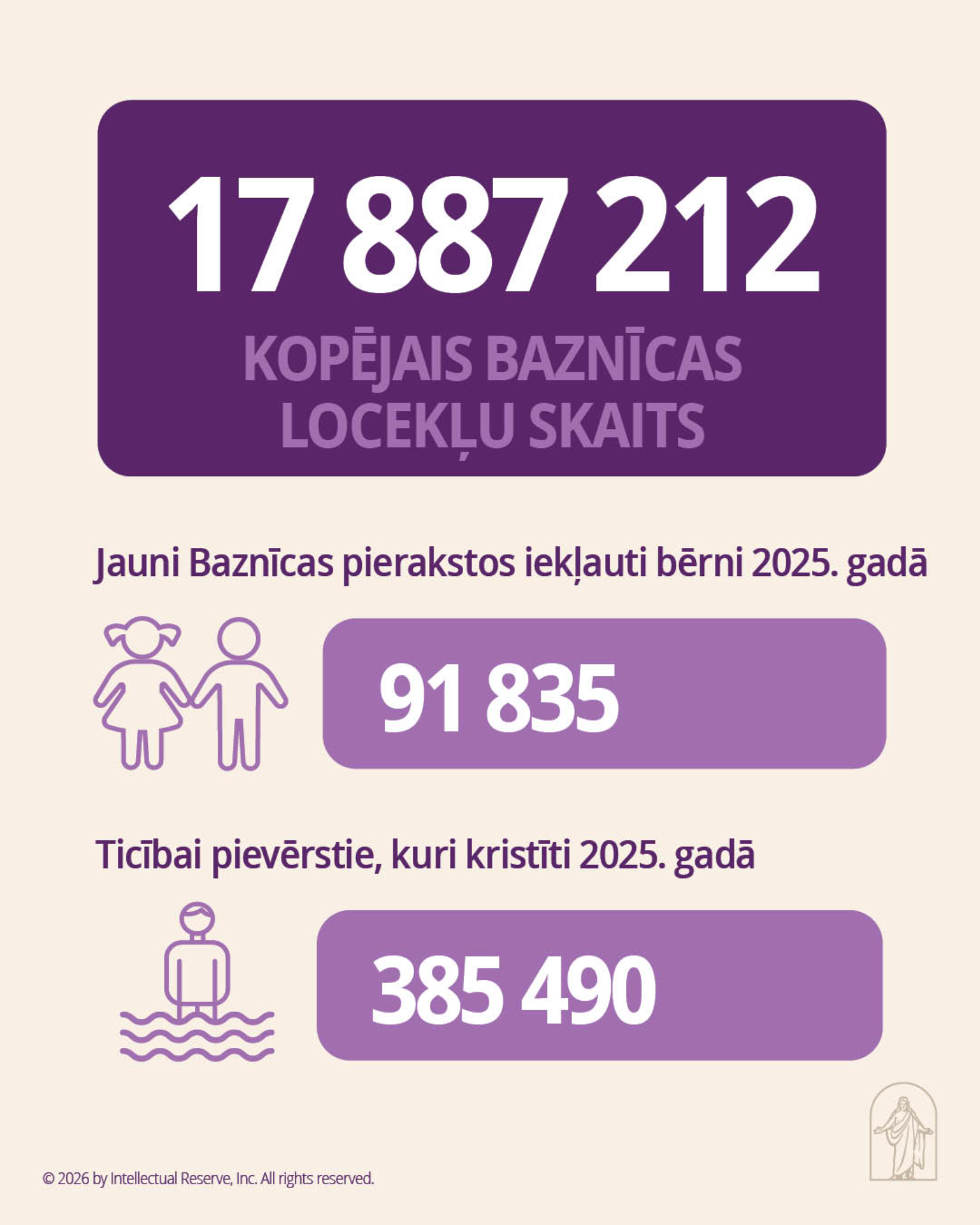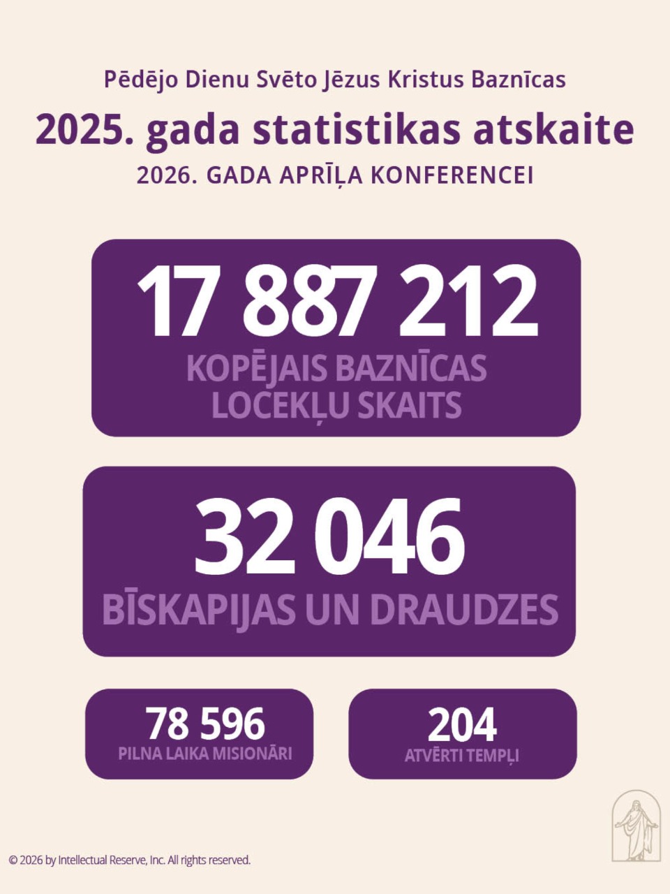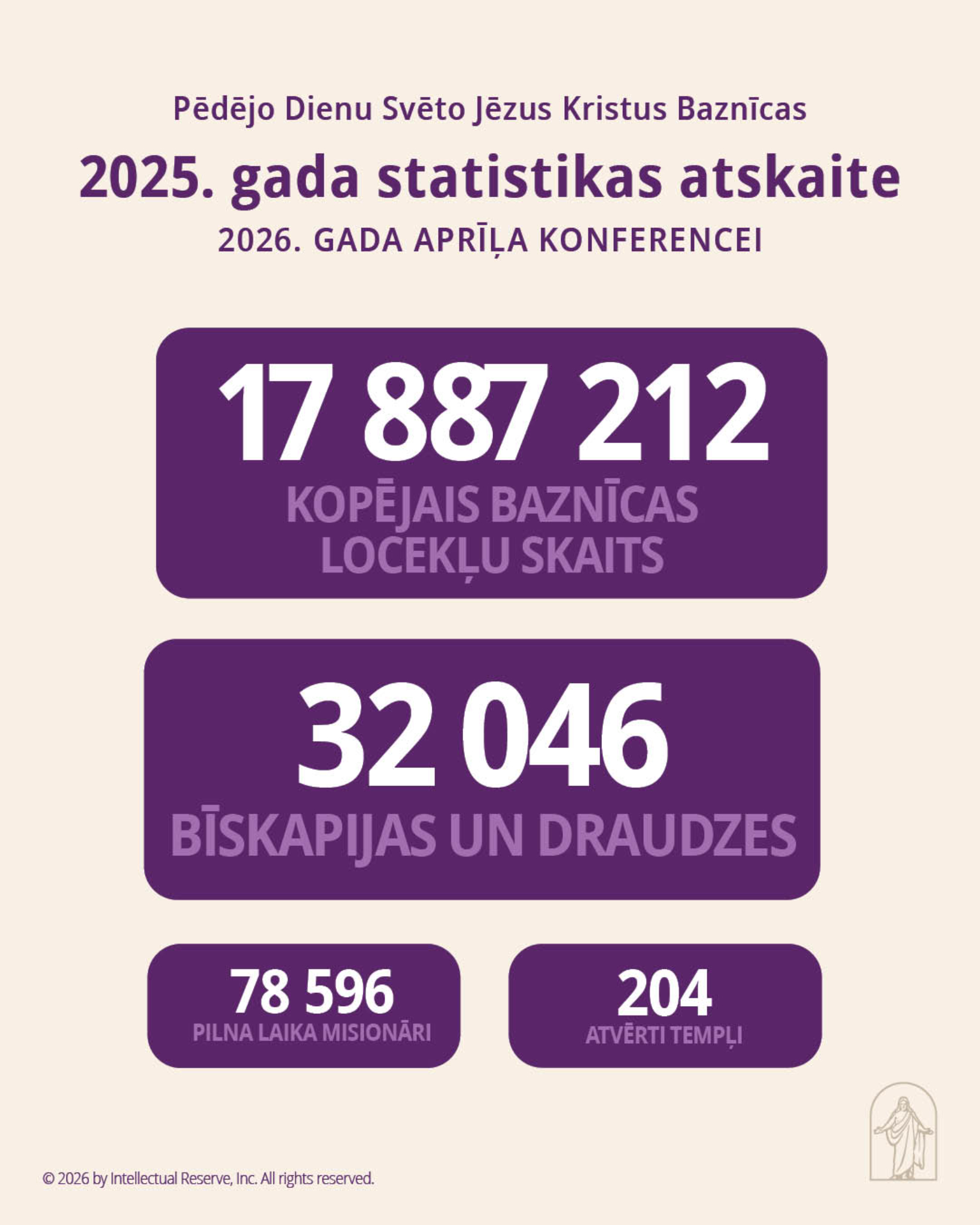 Pēdējo Dienu Svēto Jēzus Kristus Baznīcas locekļu informācijai Augstākais prezidijs ir izdevis šādu statistikas atskaiti par Baznīcas izaugsmi un statusu 2025. gada 31. decembrī.